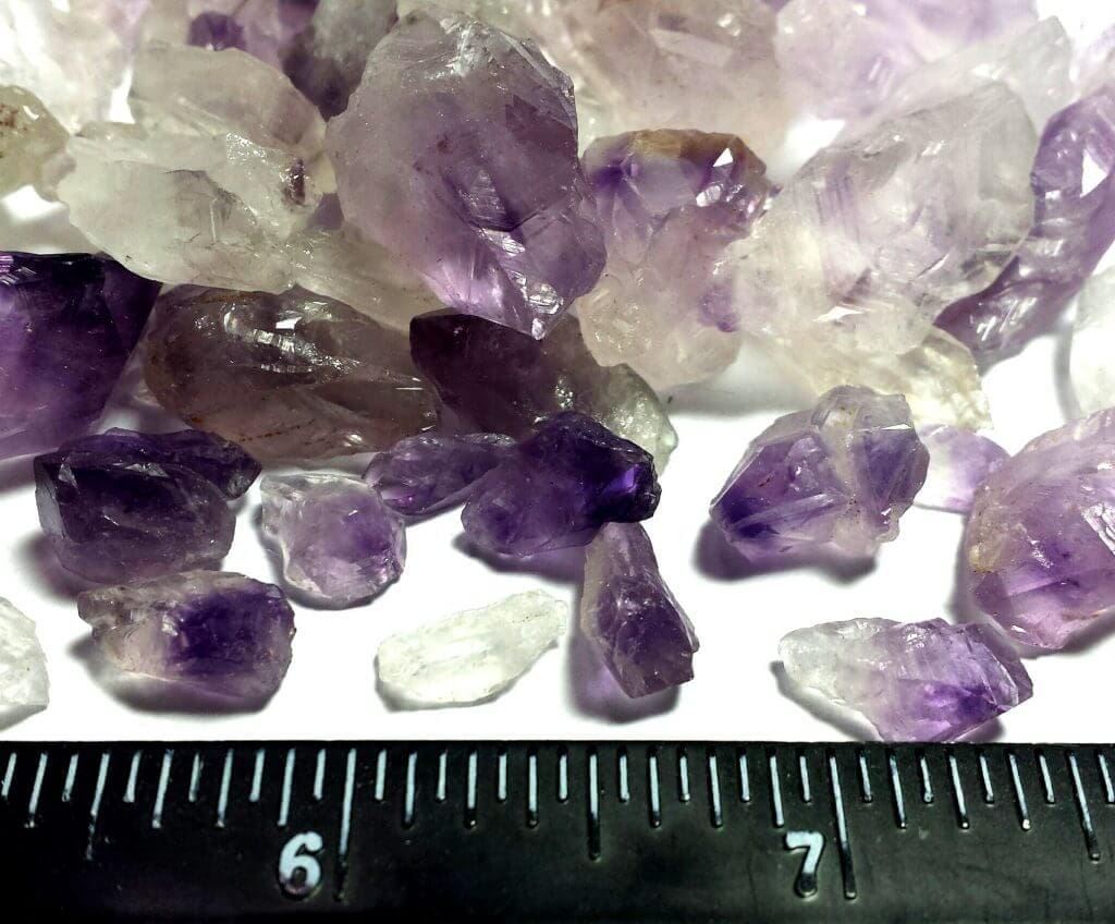 Featured are genuine amethyst and clear quartz points/pieces. Amethyst and quartz are quartz minerals. They can be found in several places on the earth and can be light to dark in color. Most amethyst and quartz are translucent. This amethyst and quartz are rough specimen crystal points and pieces. Very purple at the top, bi-color clear quartz on the bottom and clear quartz.