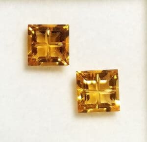 GEM TYPE : Genuine Citrine WEIGHT: Aprx. 4.80-4.90 ctw (each parcel) MEASURES: 8mm (per gem) CUT: Fantasy Four-Square CLARITY: Transparent/Mixed Shades TREATMENT: Traditional Heat # OF GEMS PER PARCEL: 2 ESTIMATED RETAIL VALUE: $90 (per parcel) Item Description Featured are genuine citrine. They are found in Brazil and are a member of the quartz family, heated to obtain its traditional yellow color. These particular gems are a mix color hue, from dark to light yellow have a custom flat top (table) that has been divided into four squares. Pictured is a sample, taken from the much larger parcel of the type of gemstones being offered. The price listed is for (1) 2 Pcs. gemstone parcel. PHOTOS ENLARGED TO SHOW DETAIL