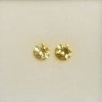 Featured are a pair of genuine citrine. They are found in Brazil. These particular gemstones are of a vibrant yellow intense color, with a traditional round cut.