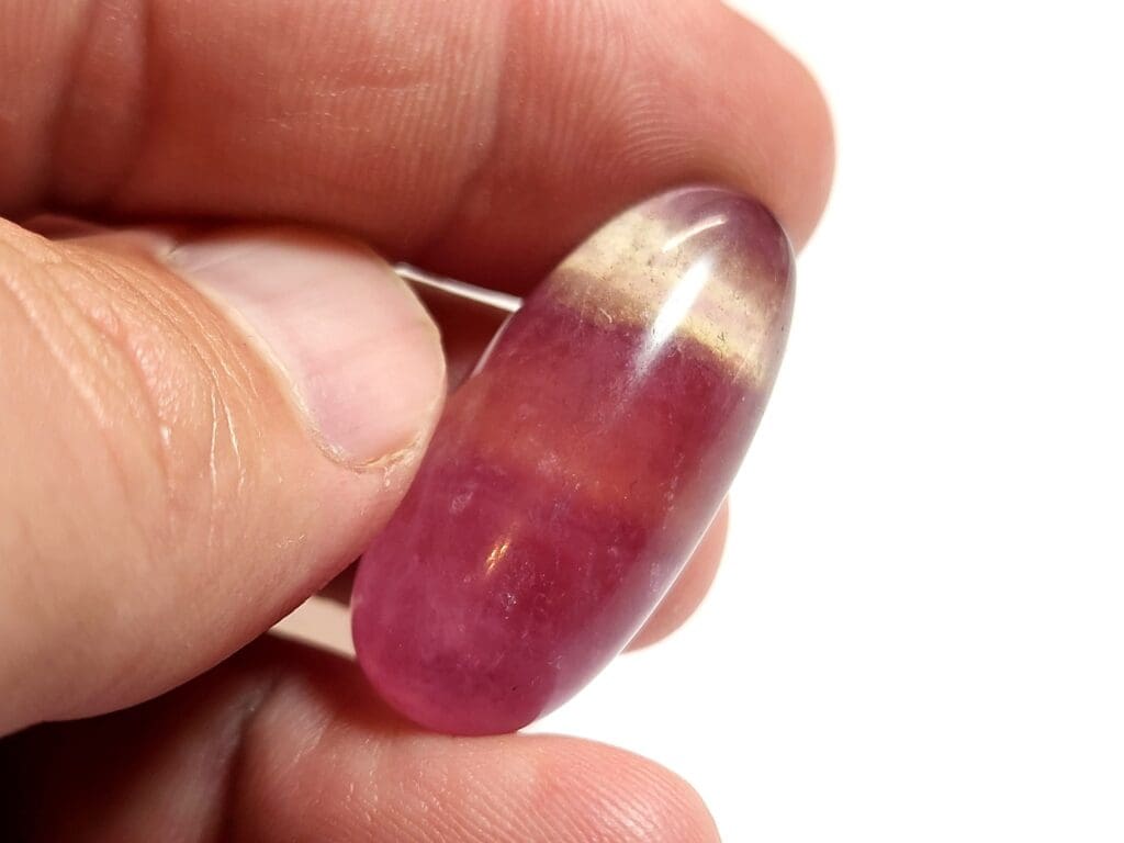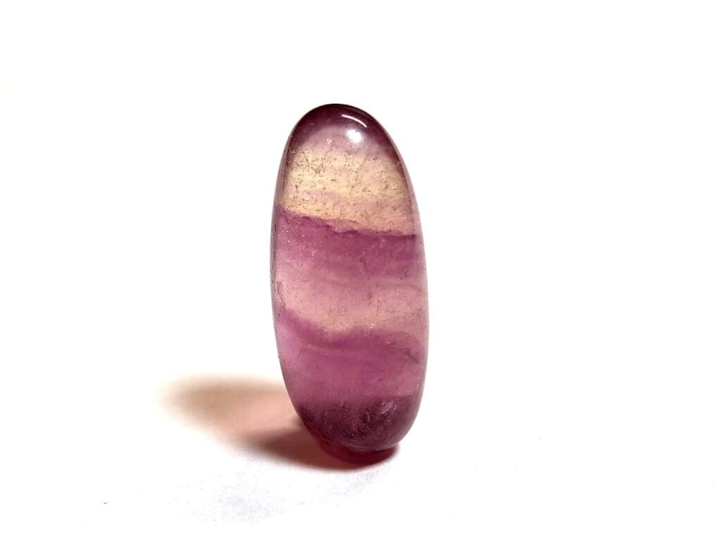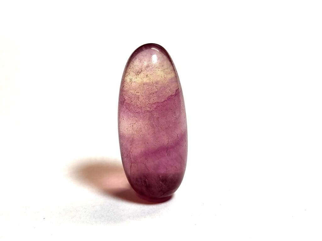GEM TYPE : Genuine Fluorite WEIGHT: Aprx. 64.60 Carats MEASURES: Aprx. 34x15mm CUT: Polished "Jelly Bean" CLARITY: Transparent/Translucent TREATMENT: None (Natural) # OF GEMS PER PARCEL: 1 ESTIMATED RETAIL VALUE: $40 (each parcel) CLICK FOR VIDEO ITEM DESCRIPTIONFeatured is a genuine natural fluorite. Fluorite comes in a wide range of colors and has subsequently been dubbed "the most colorful mineral in the world". The most common colors are purple, blue, green, yellow, or colorless. Less common are pink, red, white, brown, black, and nearly every shade in between. Color zoning or banding is commonly present. This particular gemstone has a banded purple color and a unique polished "jelly bean" shape. Pictured is the actual gemstone being offered. PHOTOS ENLARGED TO SHOW DETAIL