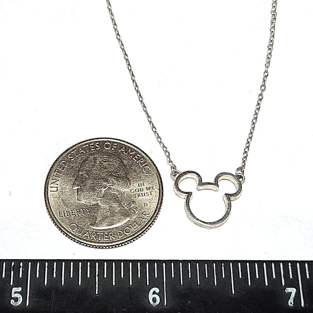 Disney© Mickey Mouse Outline Head 925 Silver Necklace 16″ #2774