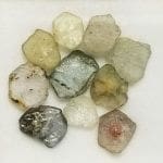 GEM TYPE : Genuine Montana Sapphire WEIGHT: Aprox. 11.42 ctw MEASURES: Aprx. 7mm - 8mm (each gem) CUT: Flat Rough Specimen (mixed color) CLARITY: Transparent/Translucent/Opaque TREATMENT: None/ Unheated (Natural) # OF GEMS PER PARCEL: 10 ESTIMATED RETAIL VALUE: $228 (entire parcel) ITEM DESCRIPTION Featured are genuine rough Montana sapphires. Sapphires can be found in a variety of places on the earth, but these rough specimen sapphires are only found in Montana. These sapphires are natural river mined rough specimens, and have been left as found, completely unheated, which gives them their distinct pastel colors. These particular sapphires are naturally occurring flat "plate-like" crystals, each roughly +/- 2mm thick. Their colors range from grey, blue-grey, yellow, violet to a soft peach with a strong pink dot in the center. Pictured is the actual 10 Pcs. gemstones lot being offered. PHOTOS ENLARGED TO SHOW DETAIL