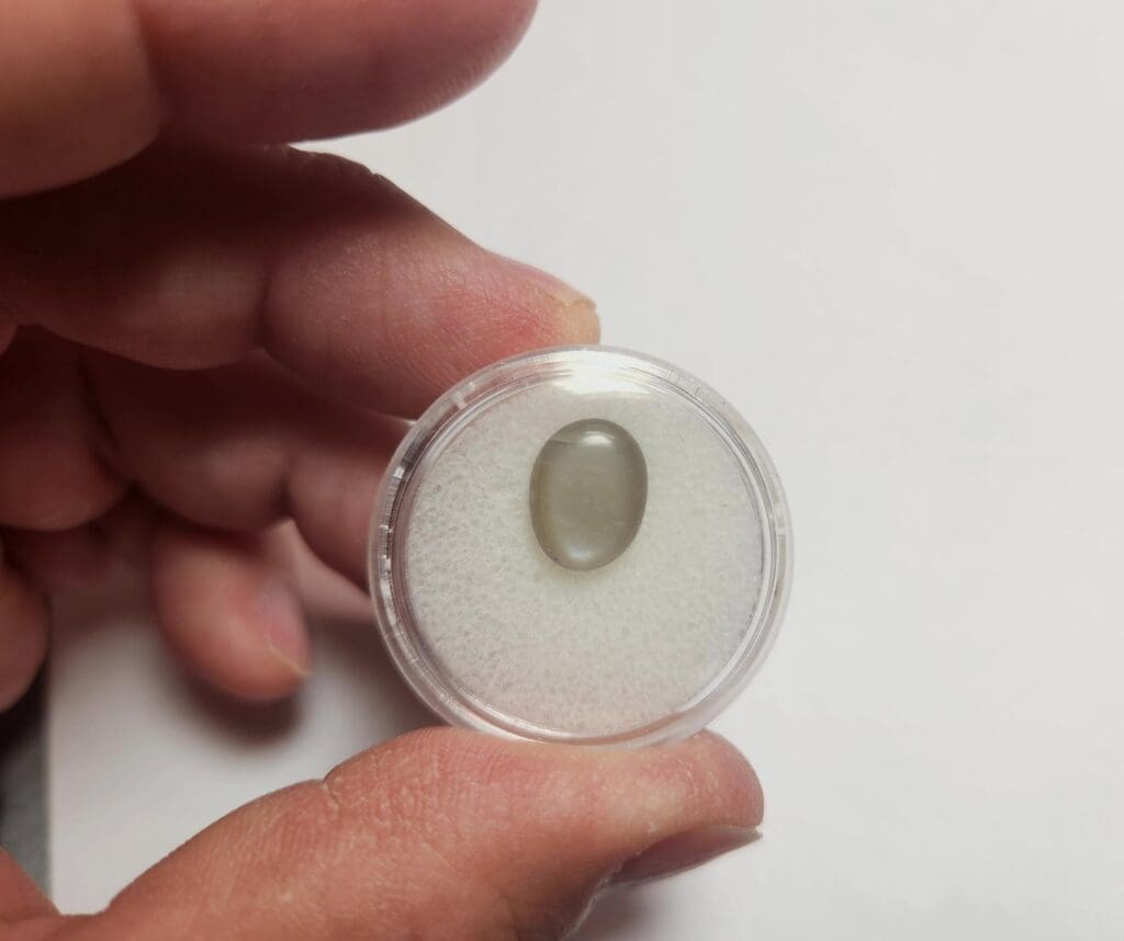 GEM TYPE : Genuine Grey Moonstone WEIGHT: Aprx. 4.05 Crts MEASURES: Aprx. 11.5x9mm CUT: Oval Button CLARITY: Translucent TREATMENT: None (natural) # OF GEMS PER PARCEL: 1 ESTIMATED RETAIL VALUE: $20 ITEM DESCRIPTIONPictured is the actual gemstone being offered. PHOTOS ENLARGED TO SHOW DETAIL