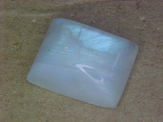 GEM TYPE : Genuine Rainbow Moonstone WEIGHT: 19.90 crts MEASURES:18x14.5MM CUT: Rectangle Cabochon CLARITY: Natural ESTIMATED RETAIL VALUE: $40 Item DescriptionFeatured is a genuine moonstone. Moonstones are of the mineral feldspar and typically have a wonderful "sheen" (movement of light), while others have a more distinct "cat's effect". Moonstones can be found in many places in the world. This particular gemstones is has a rich color, transparent, with a wonderful blue/rainbow color effect. Pictured is the actual gemstones being offered.
